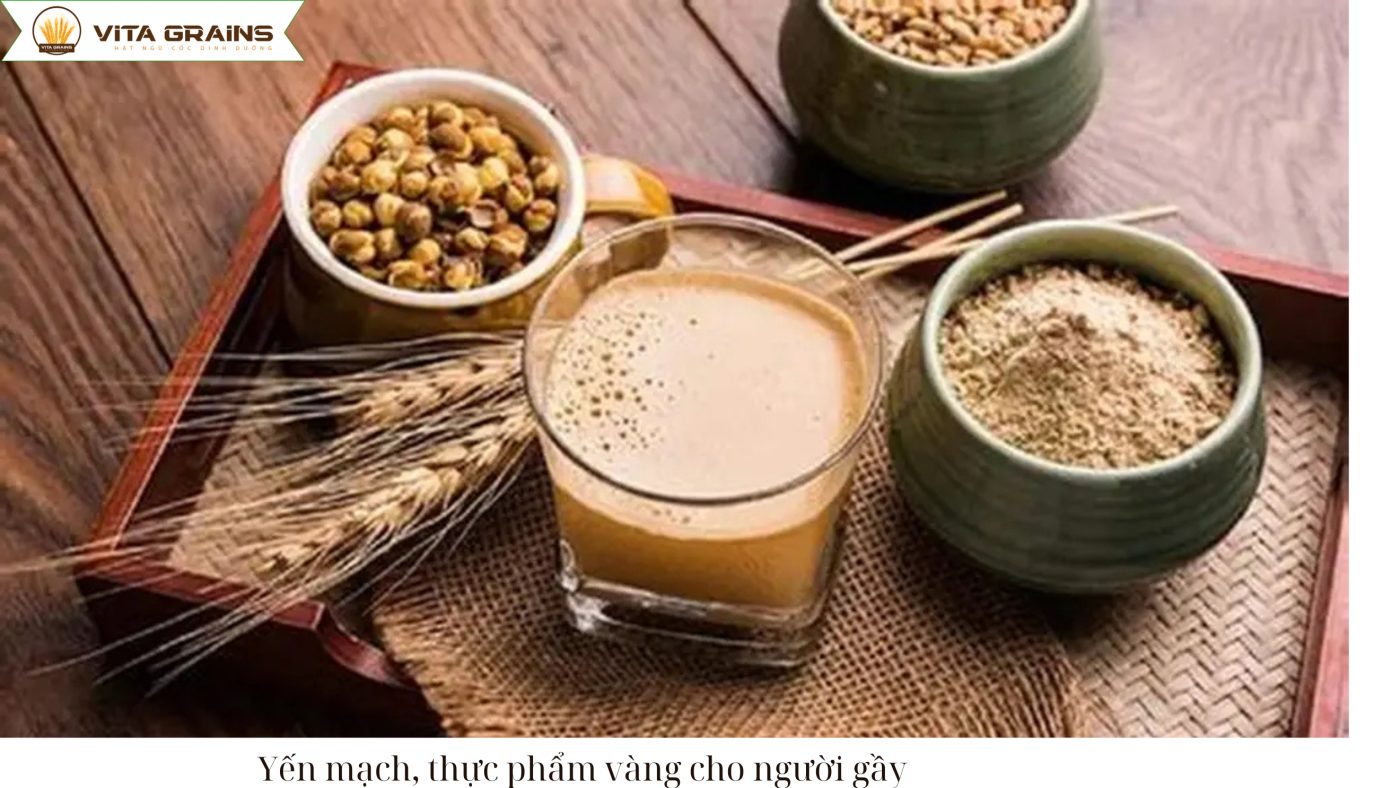 Yến mạch (Avena sativa) là loại ngũ cốc nguyên hạt, giàu beta-glucan, protein thực vật và các vitamin nhóm B. Nhờ khả năng cung cấp năng lượng chậm, yến mạch giúp người gầy duy trì cảm giác no lâu, tăng lượng calo nạp vào mà không gây tích mỡ.