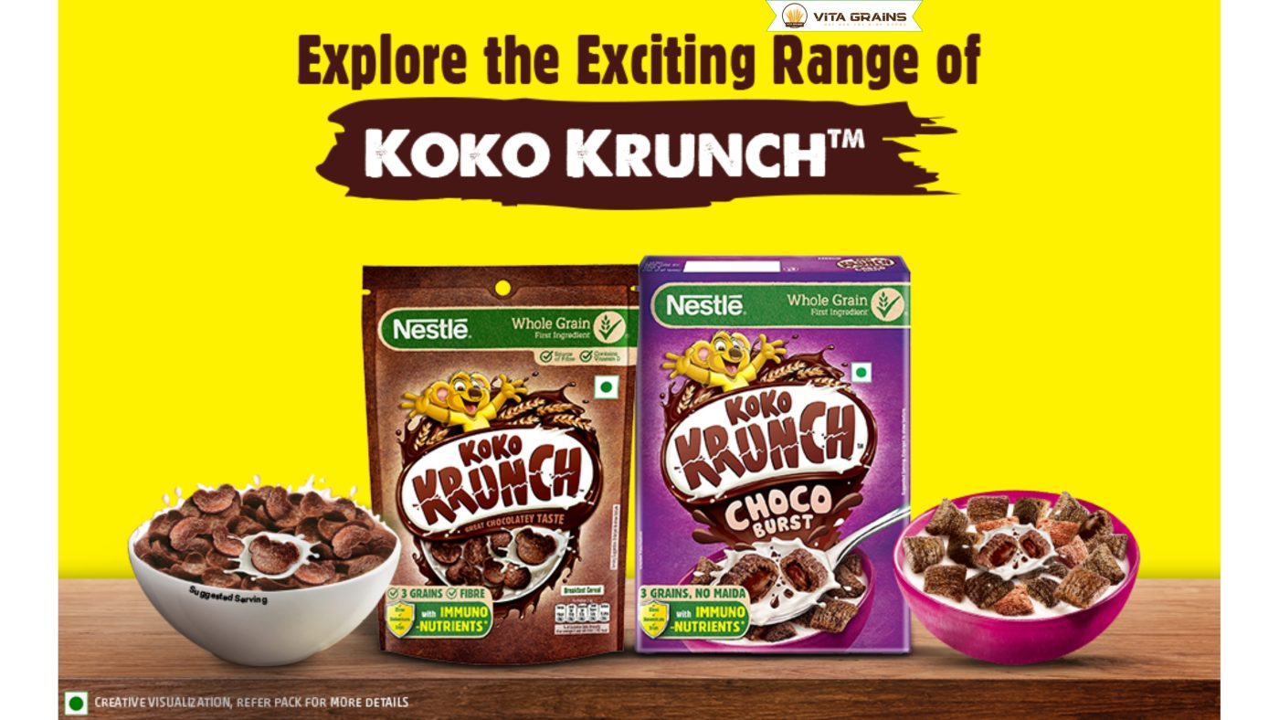 Koko Krunch là một trong những loại ngũ cốc ăn sáng nổi bật tại Malaysia, đặc biệt phù hợp với trẻ em từ 4 tuổi trở lên. Với hương vị socola ngọt nhẹ, dạng miếng ngũ cốc giòn, sản phẩm dễ dàng hấp dẫn cả những bé “kén ăn”. Được bổ sung thêm vitamin B, sắt và kẽm, sản phẩm không chỉ ngon mà còn hỗ trợ phát triển trí não và hệ miễn dịch cho trẻ.