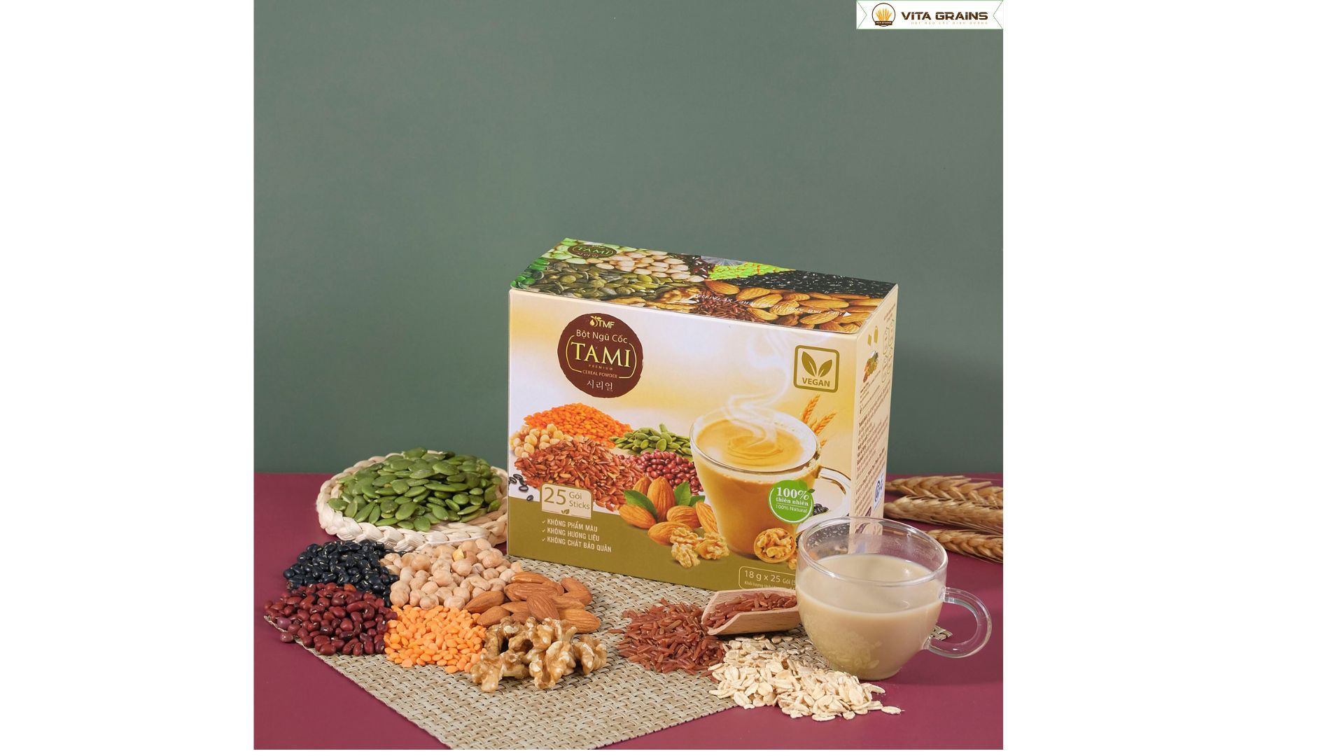 Bột ngũ cốc TAMI Green mang lại nguồn năng lượng ổn định cho cơ thể trong suốt ngày dài. Hàm lượng chất xơ cao hỗ trợ hệ tiêu hóa hoạt động tốt hơn và giảm cảm giác đầy bụng. Sản phẩm cung cấp nhóm vitamin B, protein thực vật và khoáng chất cần thiết giúp cơ thể khỏe mạnh, tinh thần tỉnh táo. Ngũ cốc còn giúp kiểm soát đường huyết, phù hợp người muốn duy trì chế độ ăn uống lành mạnh, giảm cân hoặc tăng cân khoa học bằng cách điều chỉnh khẩu phần.