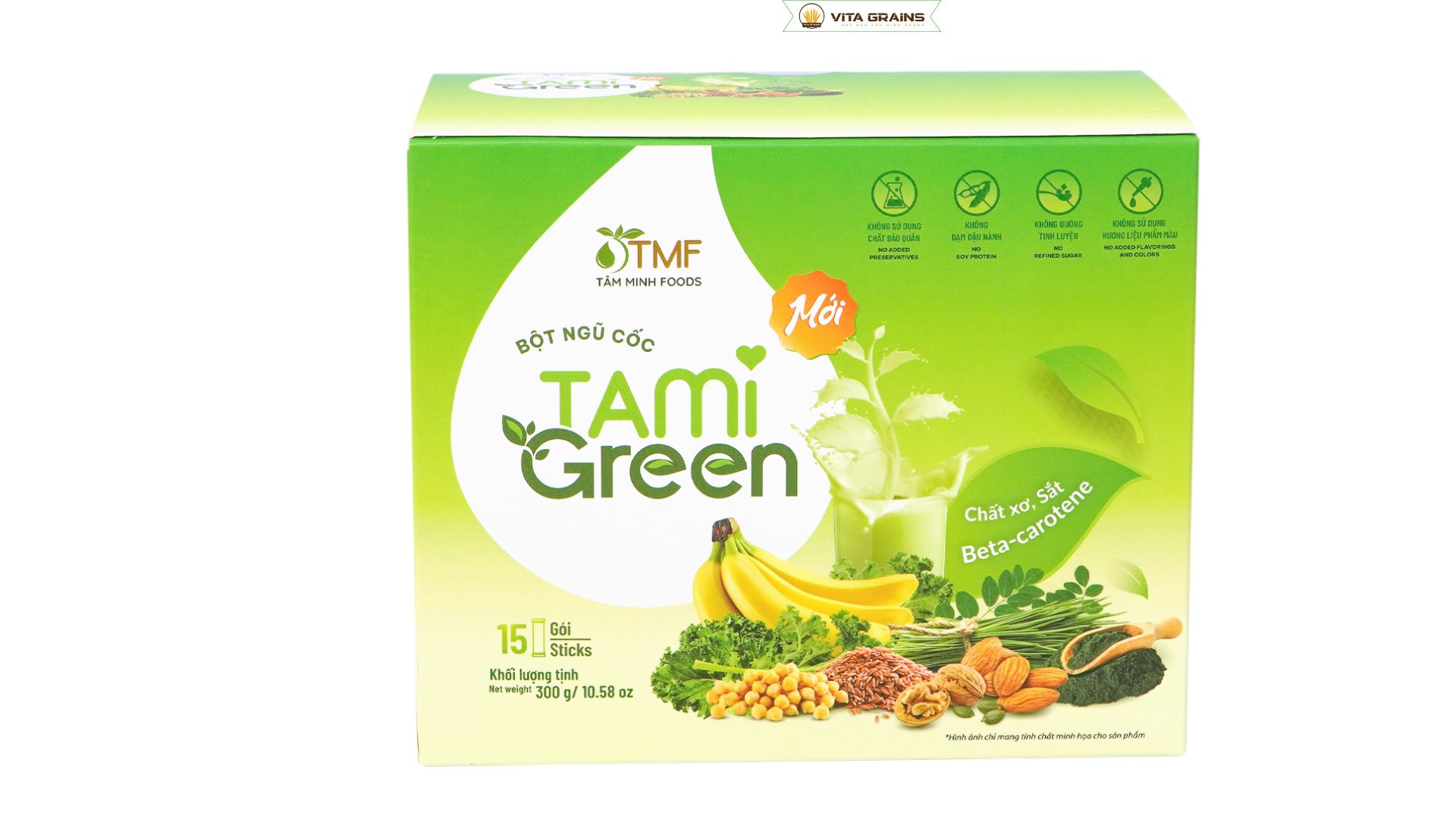 Hộp ngũ cốc TAMI Green 300g được thiết kế dạng hộp đứng chắc chắn, cao khoảng 18–20cm, phù hợp đặt trong bếp hoặc mang theo cặp. Bao bì dày, kín khí giúp bảo quản hạt luôn thơm và khô. Với khối lượng 300g, sản phẩm cung cấp khoảng 10–15 khẩu phần ăn cho một người tùy mức sử dụng. Mỗi lần pha chỉ cần 20–30g là đủ để tạo thành một bữa sáng tiện lợi hoặc bữa ăn phụ nhanh gọn.