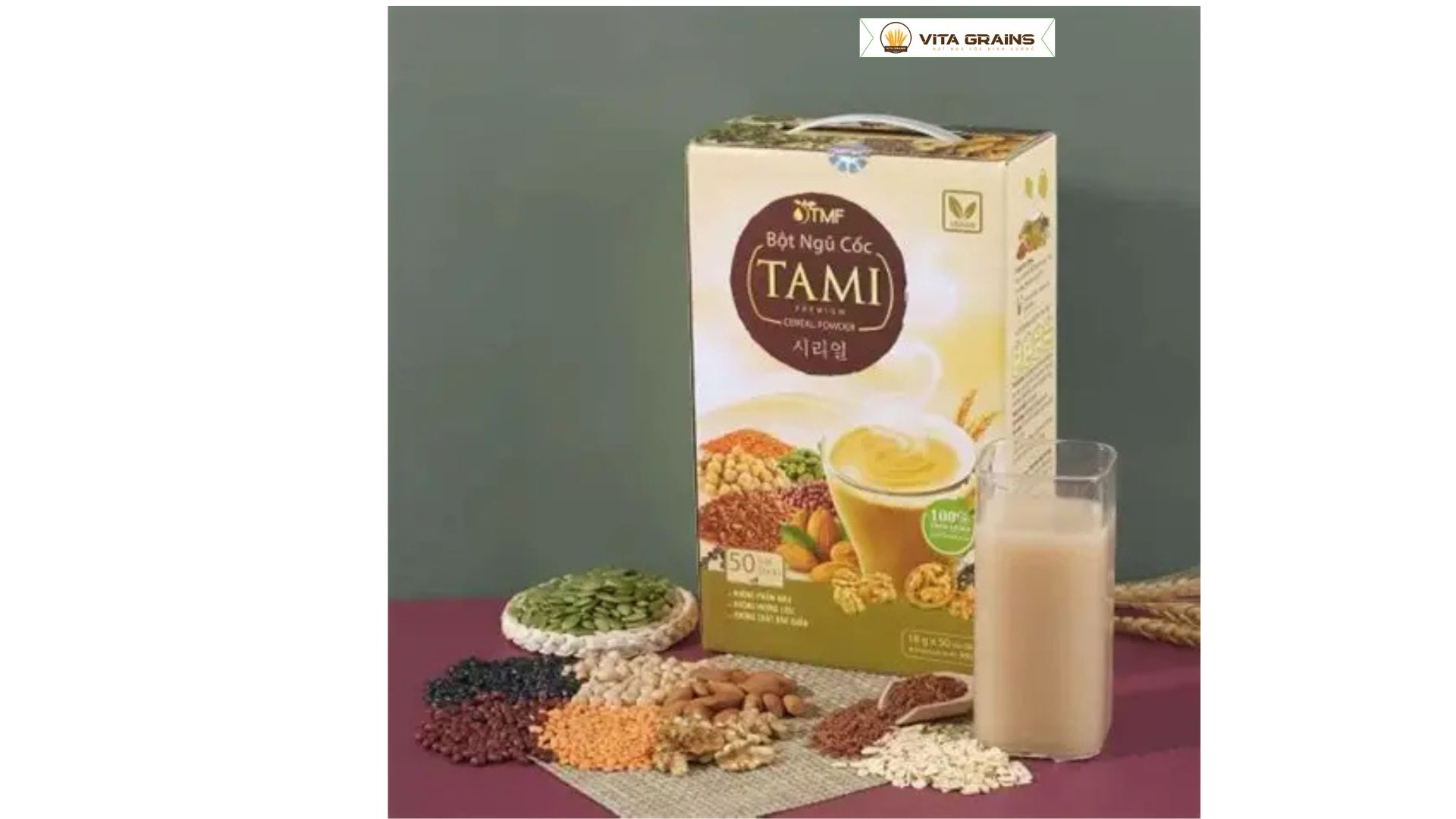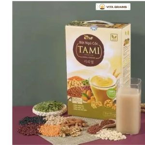 Hộp ngũ cốc TAMI ít ngọt có trọng lượng 900g, bao bì chắc chắn, dễ bảo quản.