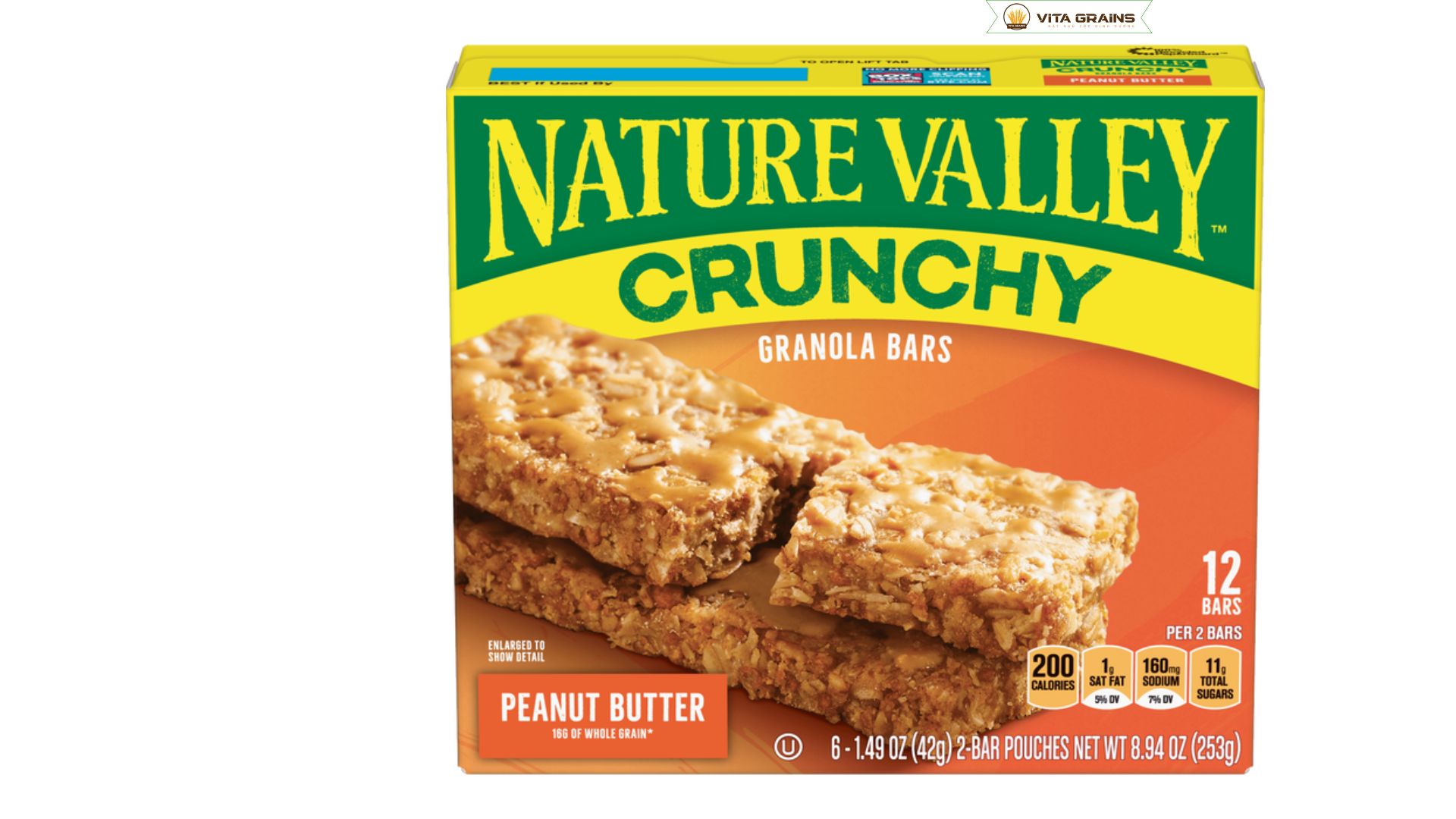 Sản phẩm chính hãng có bao bì chắc chắn, in ấn rõ nét, màu sắc tươi sáng, không bị mờ hay nhòe. Logo Nature Valley và thông tin sản phẩm được in đầy đủ bằng tiếng Anh, có hạn sử dụng rõ ràng. Mã vạch khi quét cho ra thông tin thương hiệu. Thanh ngũ cốc có kết cấu giòn, mùi thơm tự nhiên của yến mạch và bơ đậu phộng, không có mùi lạ hay dấu hiệu ẩm mốc.