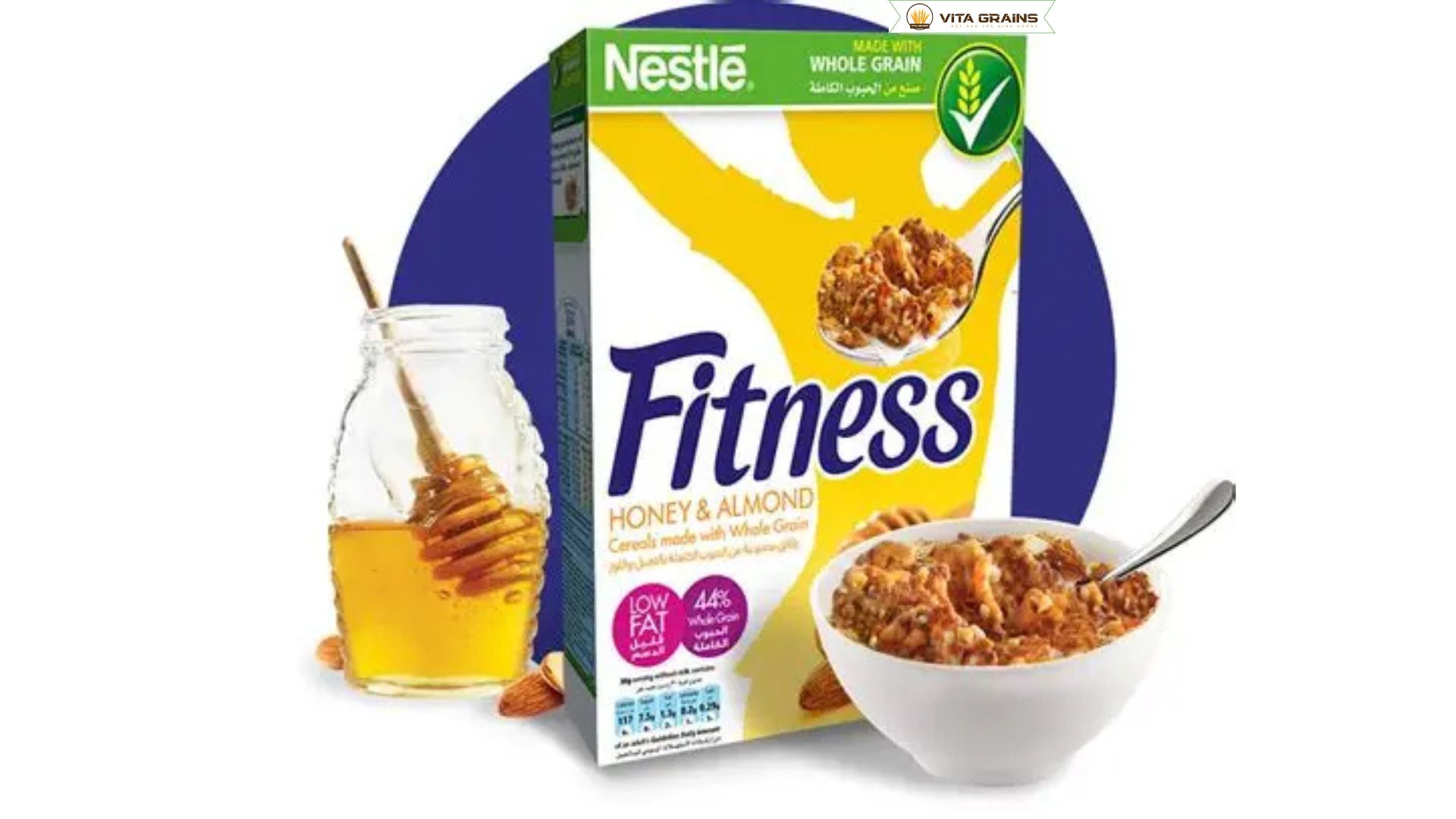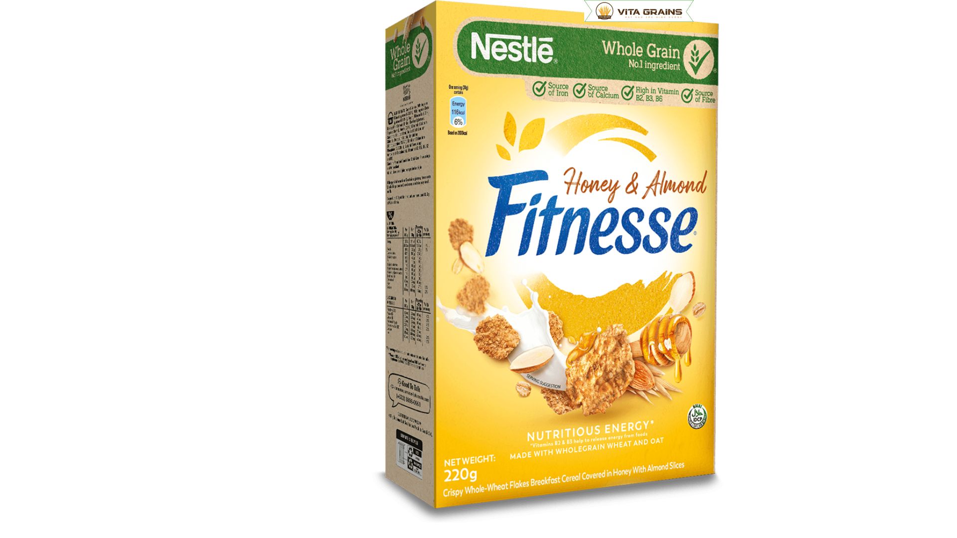 Ngũ cốc Nestlé Fitness Honey & Almonds được đóng gói trong hộp giấy chữ nhật chắc chắn, thiết kế gọn gàng, dễ bảo quản trong tủ bếp. Trọng lượng tịnh 500g phù hợp cho nhu cầu sử dụng cá nhân hoặc gia đình nhỏ. Với khẩu phần tiêu chuẩn khoảng 30–40g mỗi bữa, một hộp có thể dùng từ 12 đến 16 bữa ăn cho một người. Nếu dùng khẩu phần nhỏ hơn cho bữa phụ, số bữa có thể tăng lên đáng kể.