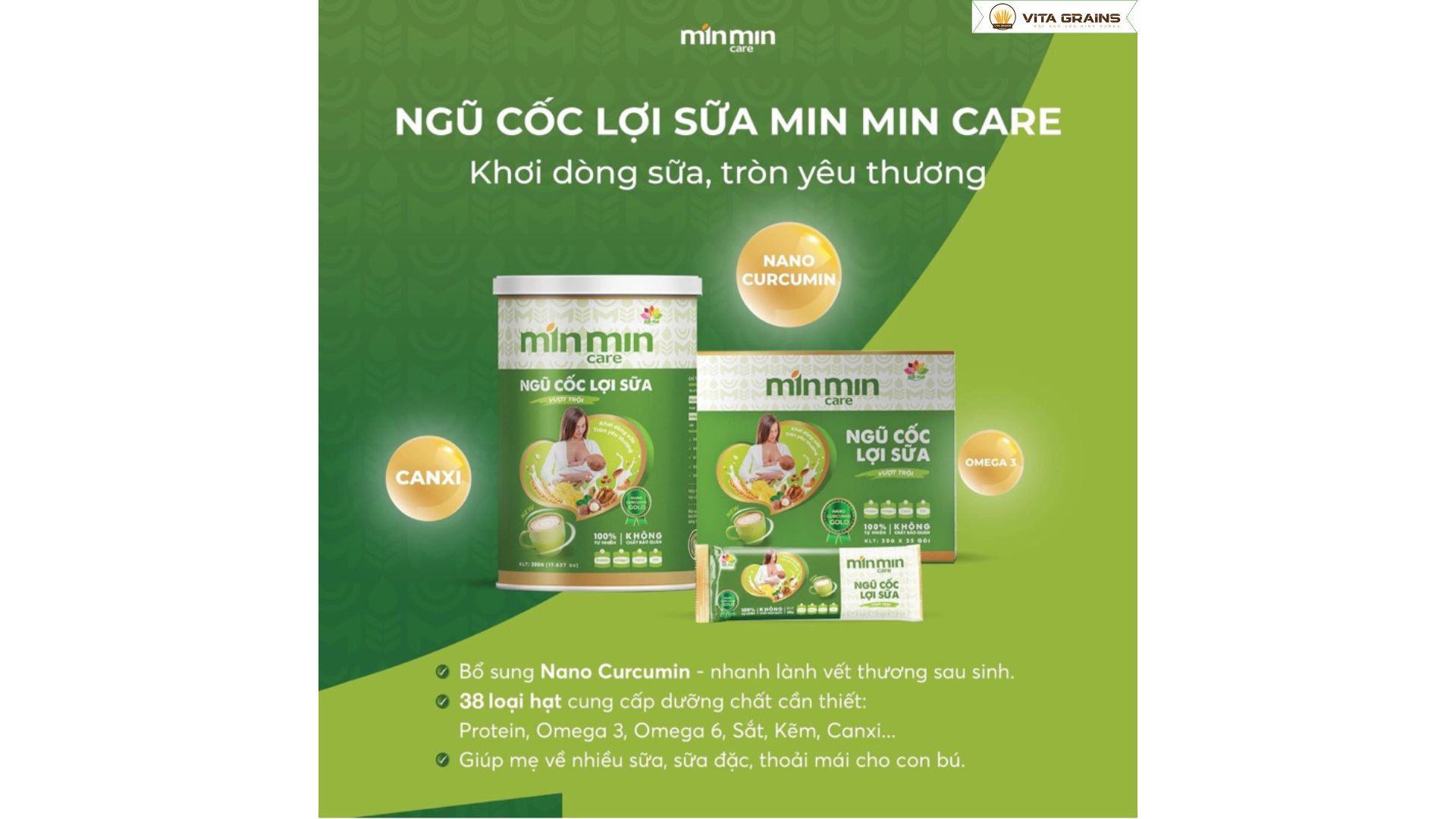 Ngũ cốc lợi sữa Min Min Care 38 loại hạt là lựa chọn hoàn hảo cho mẹ bỉm sữa và cả gia đình. Sản phẩm không chỉ giúp gọi sữa nhanh, sữa đặc, mà còn chăm sóc sức khỏe toàn diện, giúp da sáng mịn, dáng thon gọn và tinh thần luôn tràn đầy năng lượng. Đây là giải pháp dinh dưỡng tự nhiên, an toàn và lành mạnh được nhiều chuyên gia khuyên dùng.