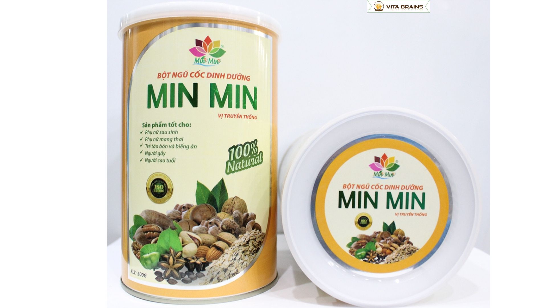 Sản phẩm được làm từ các loại hạt thuần tự nhiên như yến mạch, gạo lứt, đậu đen, đậu đỏ, đậu xanh, mè đen, hạt sen và các loại đậu – hạt dinh dưỡng khác tùy vào công thức của Min Min. Các nguyên liệu được rang chín đúng nhiệt độ để giữ trọn dưỡng chất, sau đó xay mịn, giúp dễ hòa tan và phù hợp với mọi đối tượng, kể cả người có hệ tiêu hóa kém.
