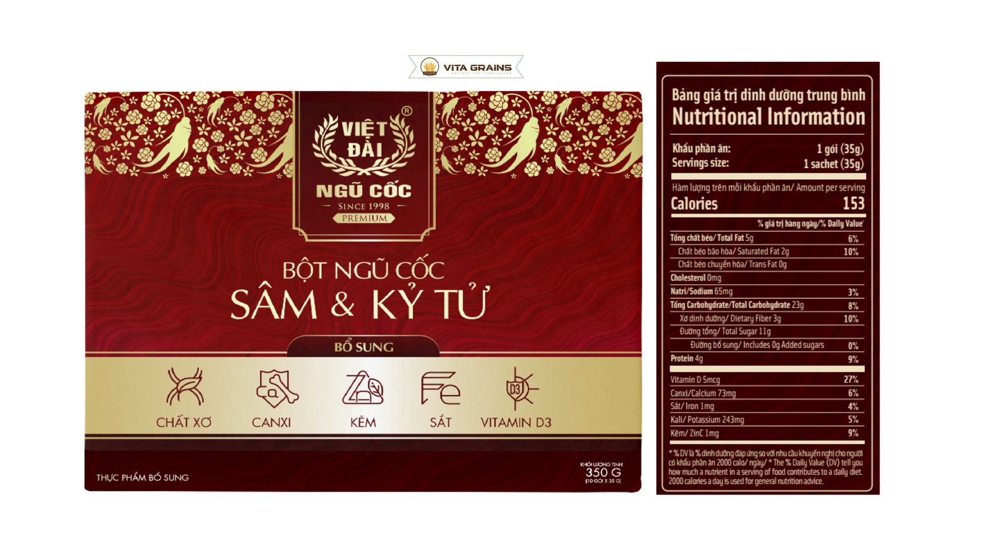 Ngũ cốc Sâm & Kỷ Tử Việt Đài 600g